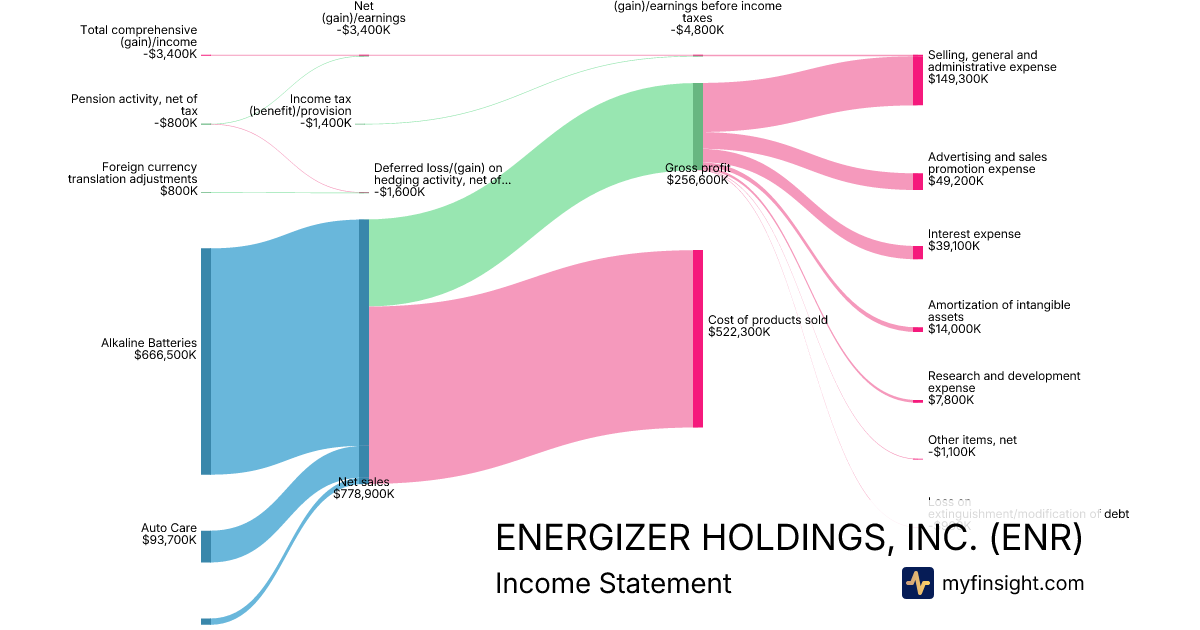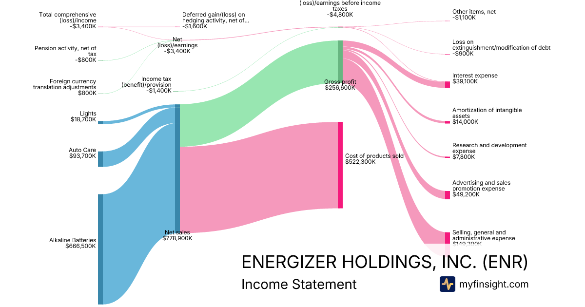 For the quarter ending 2025-12-31, ENR made $778,900K in revenue. -$3,400K in net income. Net profit margin of -0.44%.