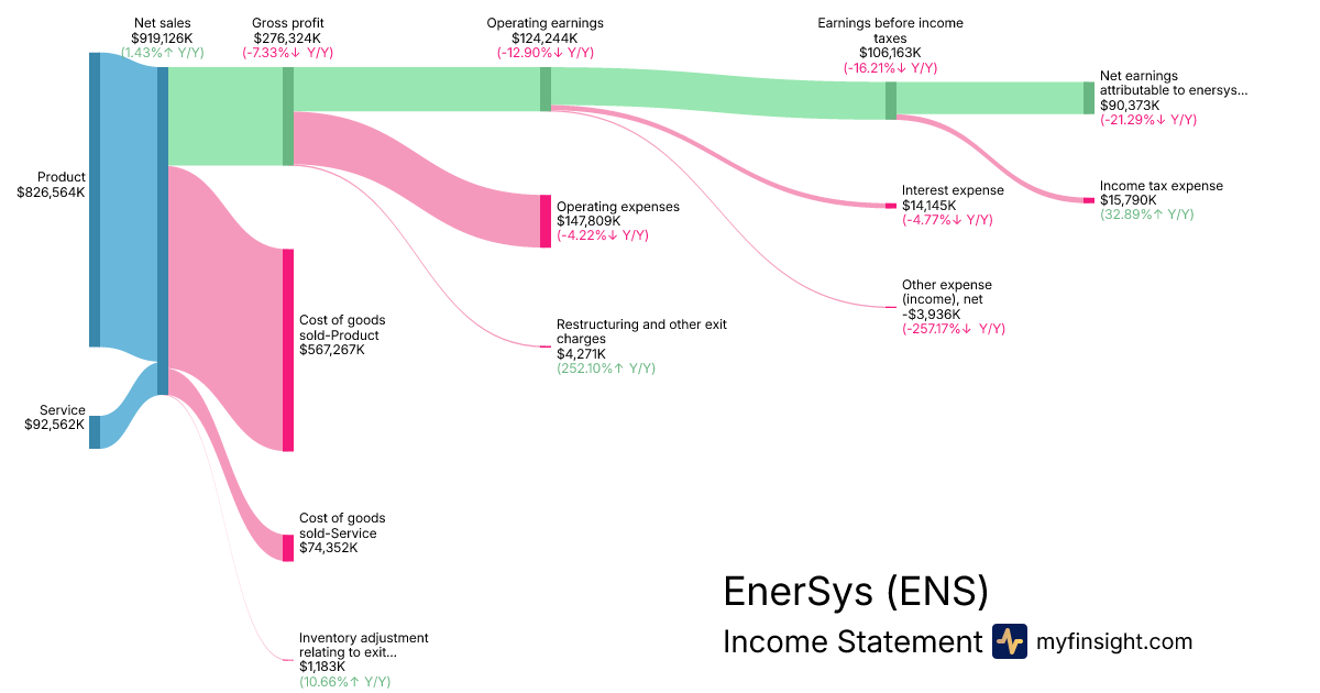 For the quarter ending 2025-12-28, ENS made $919,126K in revenue. $90,373K in net income. Net profit margin of 9.83%.