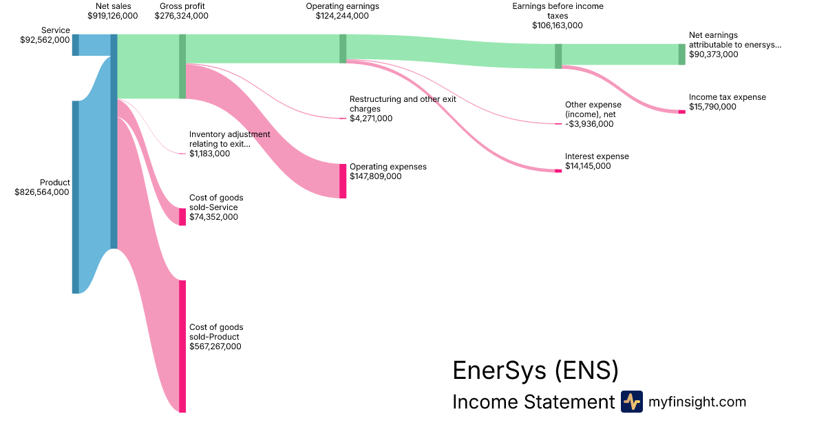 For the quarter ending 2025-12-28, ENS made $919,126,000 in revenue. $90,373,000 in net income. Net profit margin of 9.83%.