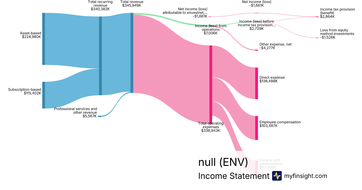 For the quarter ending 2024-09-30, ENV made $345,949K in revenue. -$1,661K in net income. Net profit margin of -0.48%.
