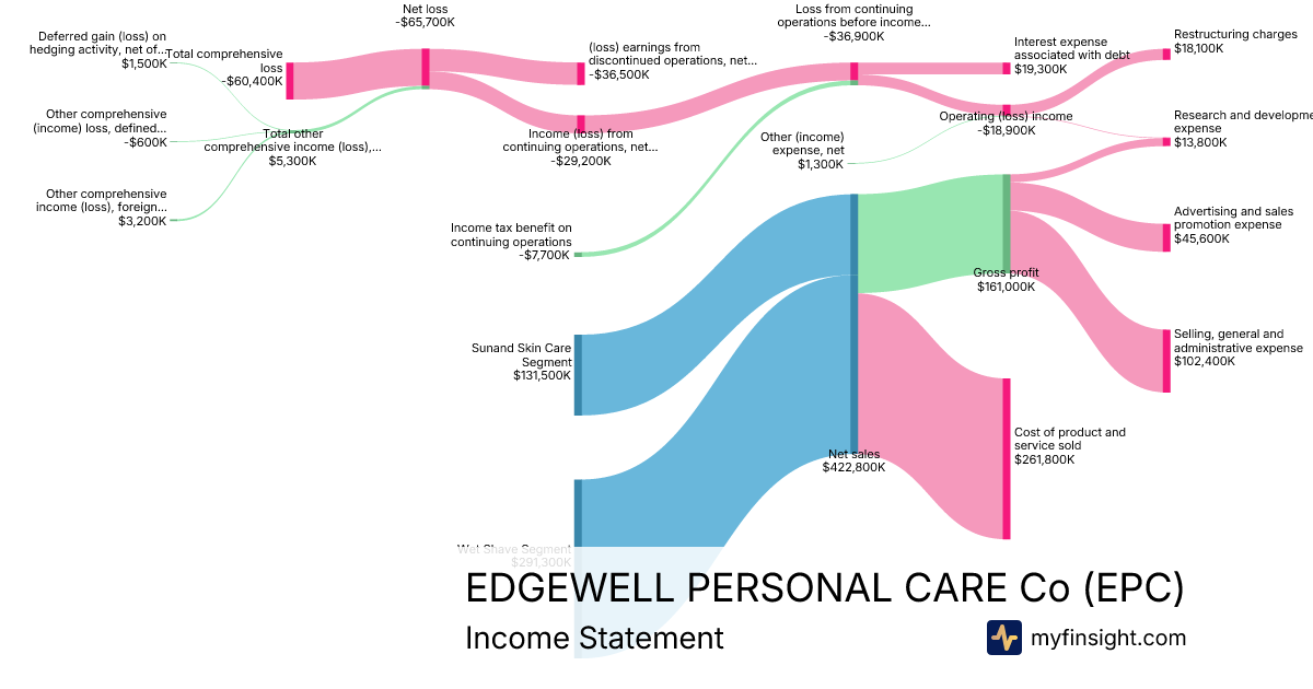 For the quarter ending 2025-12-31, EPC made $422,800K in revenue. -$60,400K in net income. Net profit margin of -14.29%.