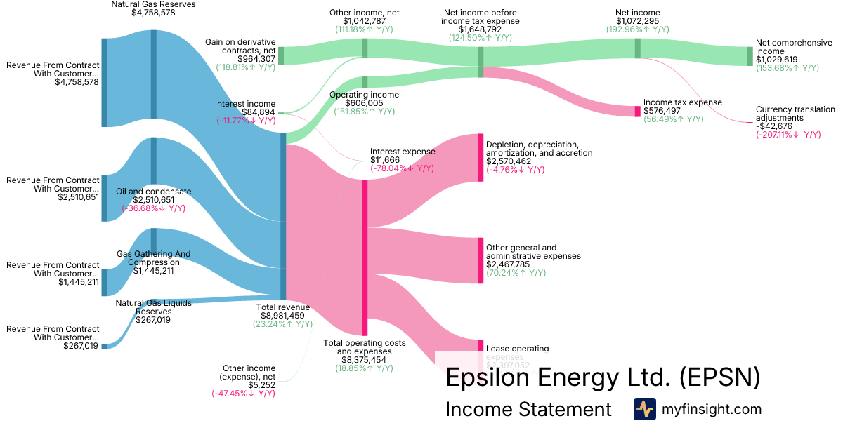 For the quarter ending 2025-09-30, EPSN made $8,981,459 in revenue. $1,029,619 in net income. Net profit margin of 11.46%.