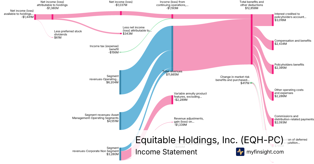 For the year ending 2025-12-31, EQH-PC made $11,665M in revenue. -$1,441M in net income. Net profit margin of -12.35%.