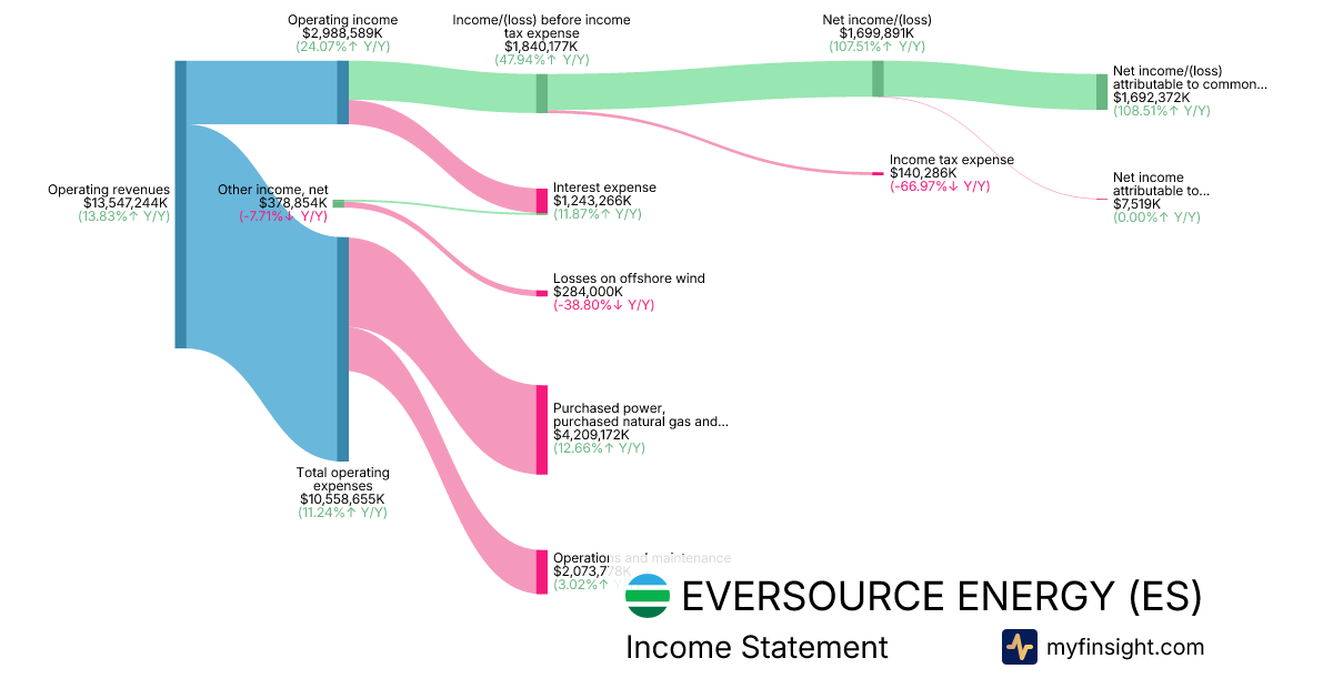 For the year ending 2025-12-31, ES made $13,547,244K in revenue. $1,692,372K in net income. Net profit margin of 12.49%.