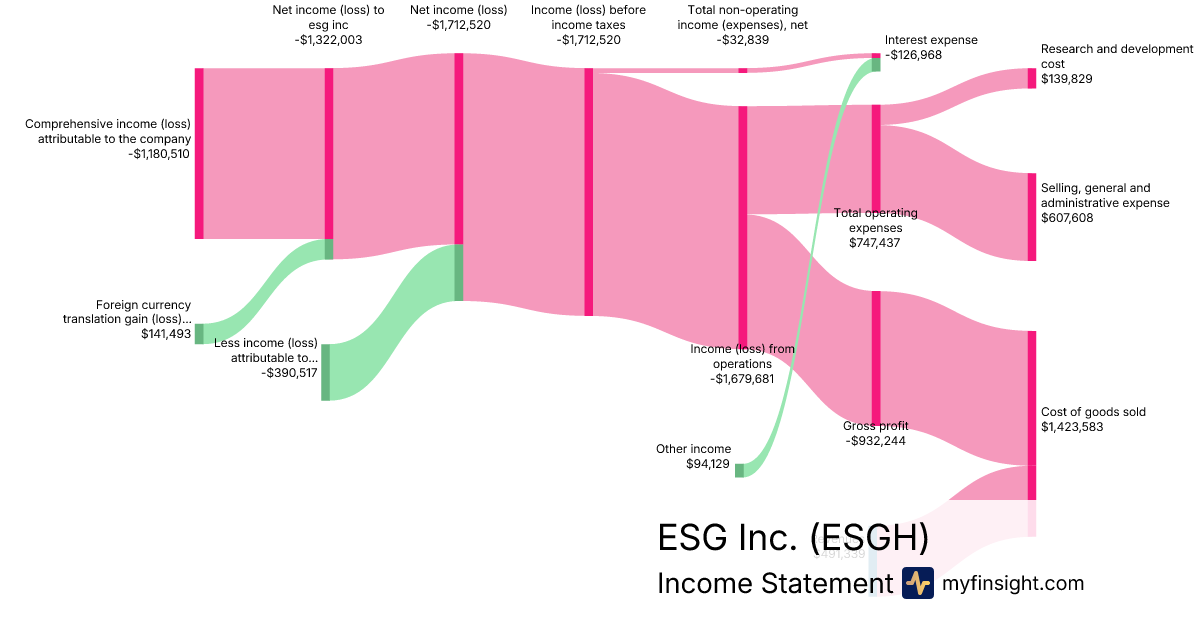 | Net income (loss) to esg inc | -1,322,003 | 517,554 | -212,664 | |