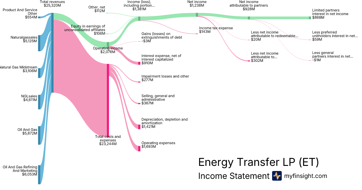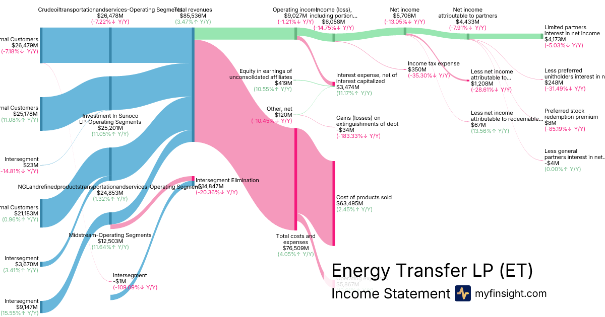 For the year ending 2025-12-31, ET made $85,536M in revenue. $4,173M in net income. Net profit margin of 4.88%.