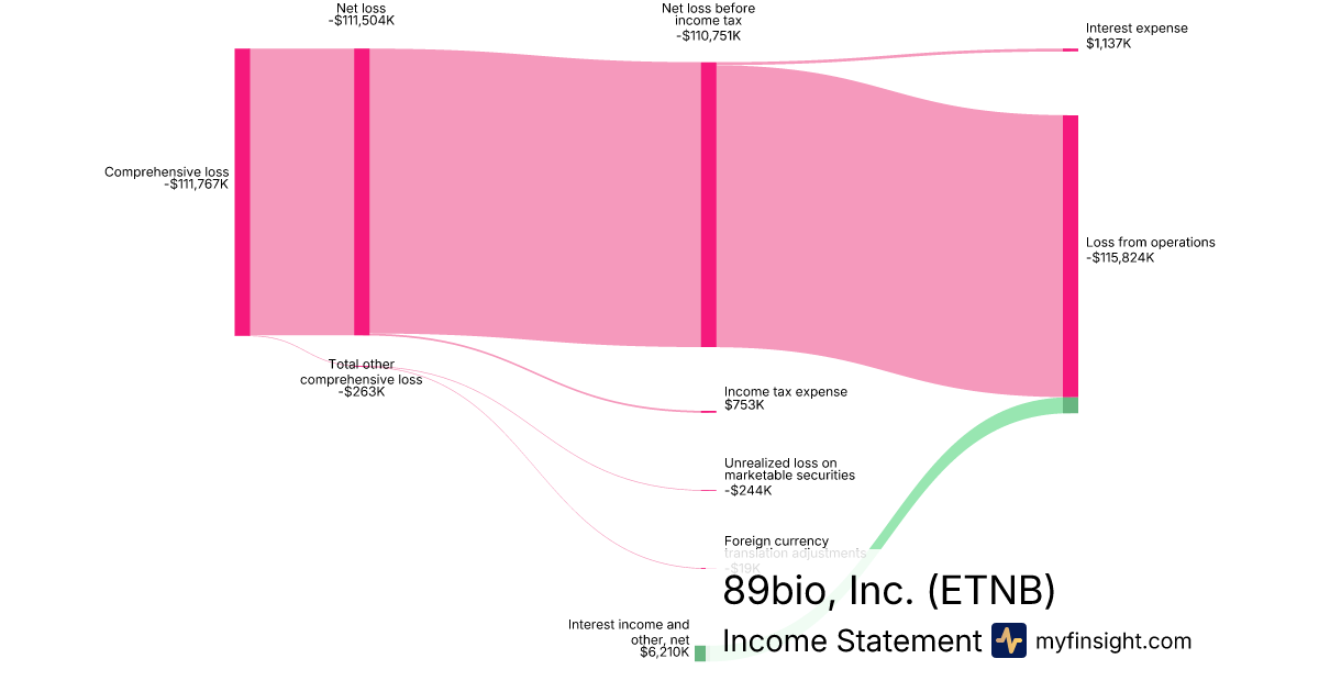 For the quarter ending 2025-06-30, ETNB made $6,210K in revenue. -$111,767K in net income. Net profit margin of -1799.79%.