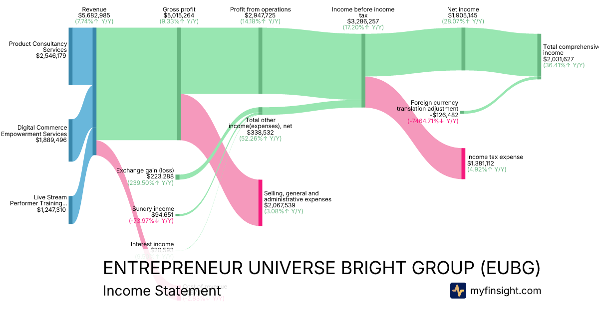 For the year ending 2025-12-31, EUBG made $5,682,985 in revenue. $2,031,627 in net income. Net profit margin of 35.75%.