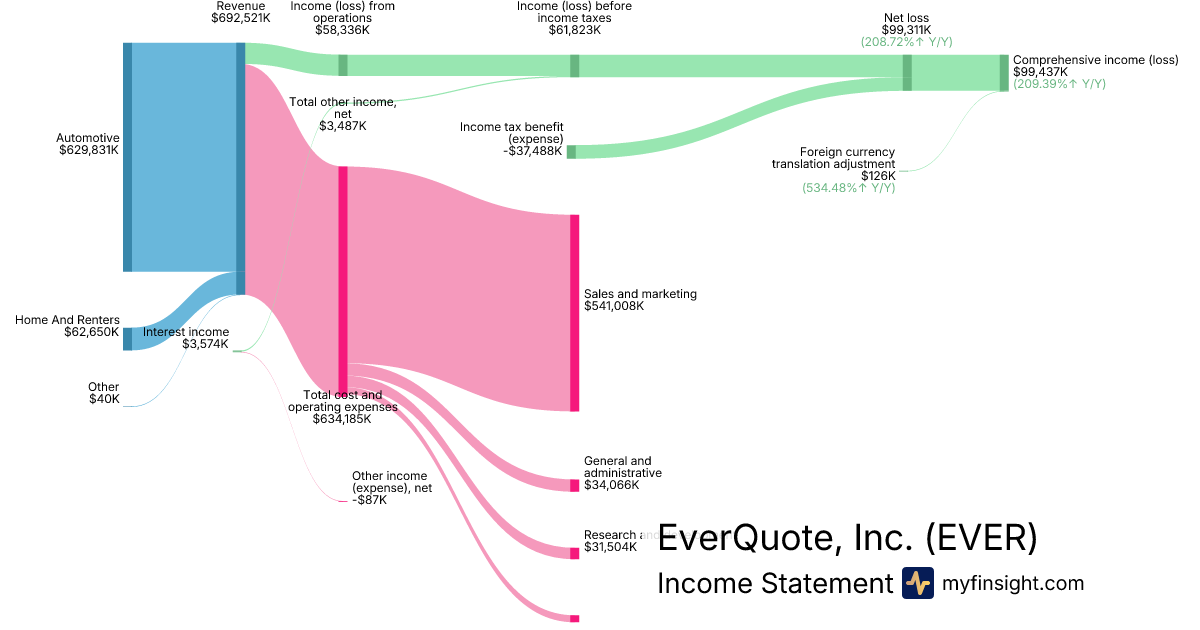 For the year ending 2025-12-31, EVER made $692,521K in revenue. $99,437K in net income. Net profit margin of 14.36%.