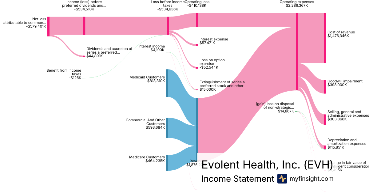 For the year ending 2025-12-31, EVH made $1,876,229K in revenue. -$579,401K in net income. Net profit margin of -30.88%.