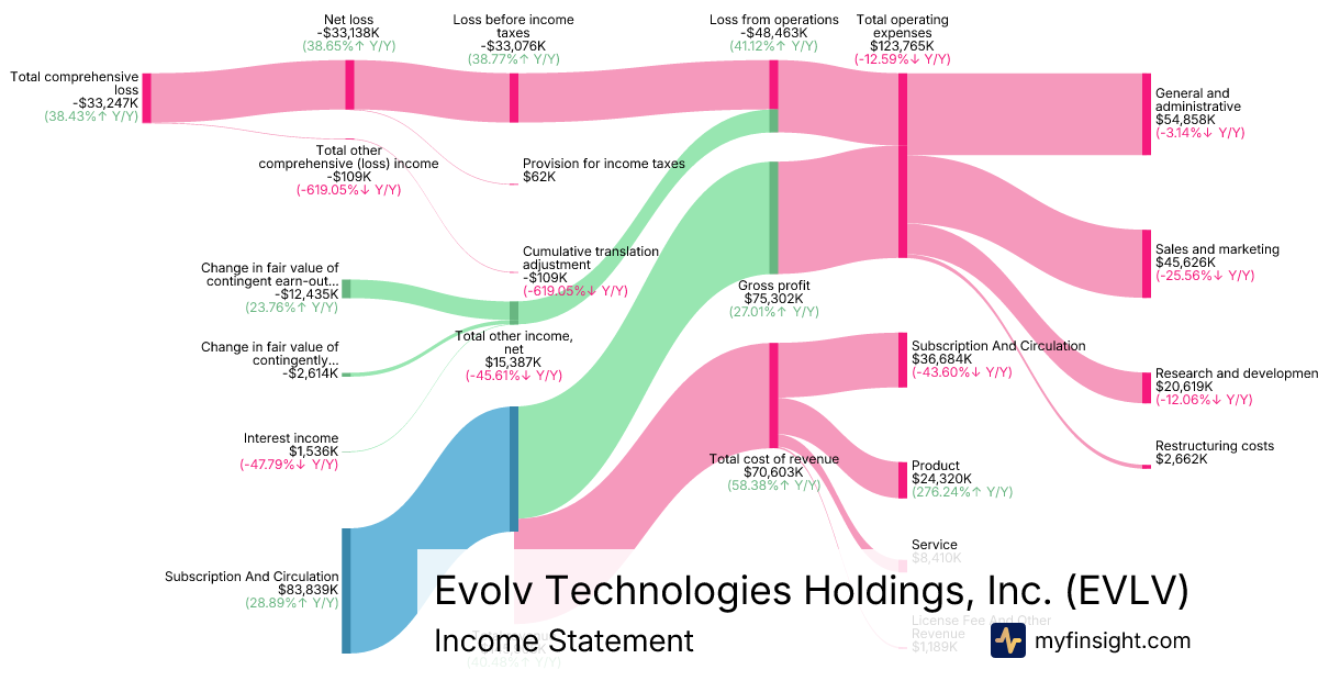 For the year ending 2025-12-31, EVLV made $145,905K in revenue. -$33,247K in net income. Net profit margin of -22.79%.