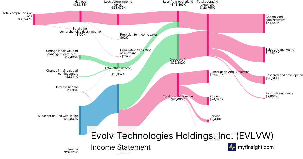 For the year ending 2025-12-31, EVLVW made $145,905K in revenue. -$33,247K in net income. Net profit margin of -22.79%.
