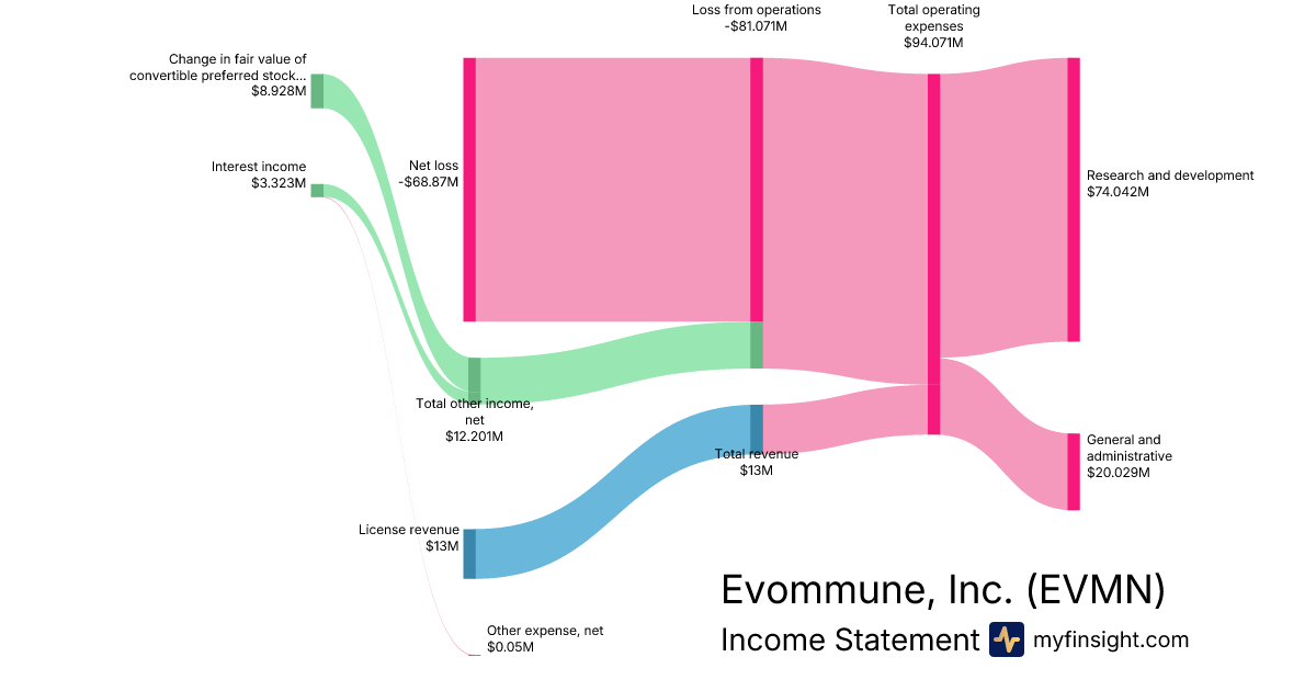 For the year ending 2025-12-31, EVMN made $13M in revenue. -$68.87M in net income. Net profit margin of -529.77%.