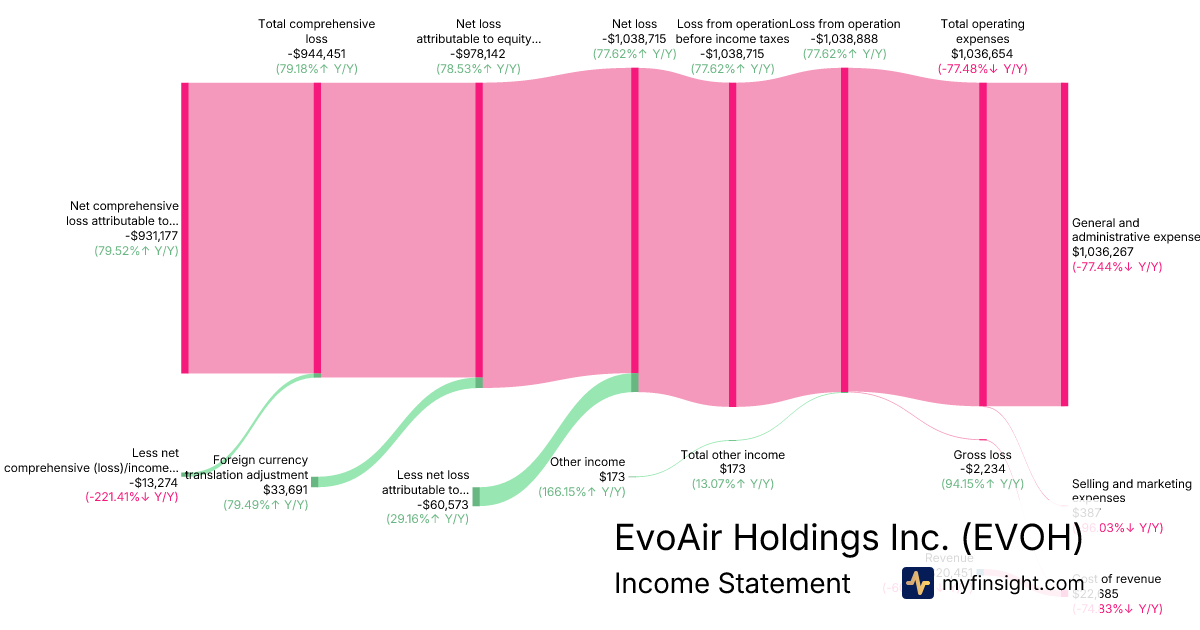 For the quarter ending 2025-11-30, EVOH made $20,451 in revenue. -$931,177 in net income. Net profit margin of -4553.21%.