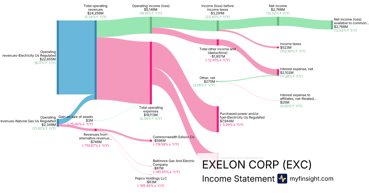 For the year ending 2025-12-31, EXC made $24,258M in revenue. $2,768M in net income. Net profit margin of 11.41%.
