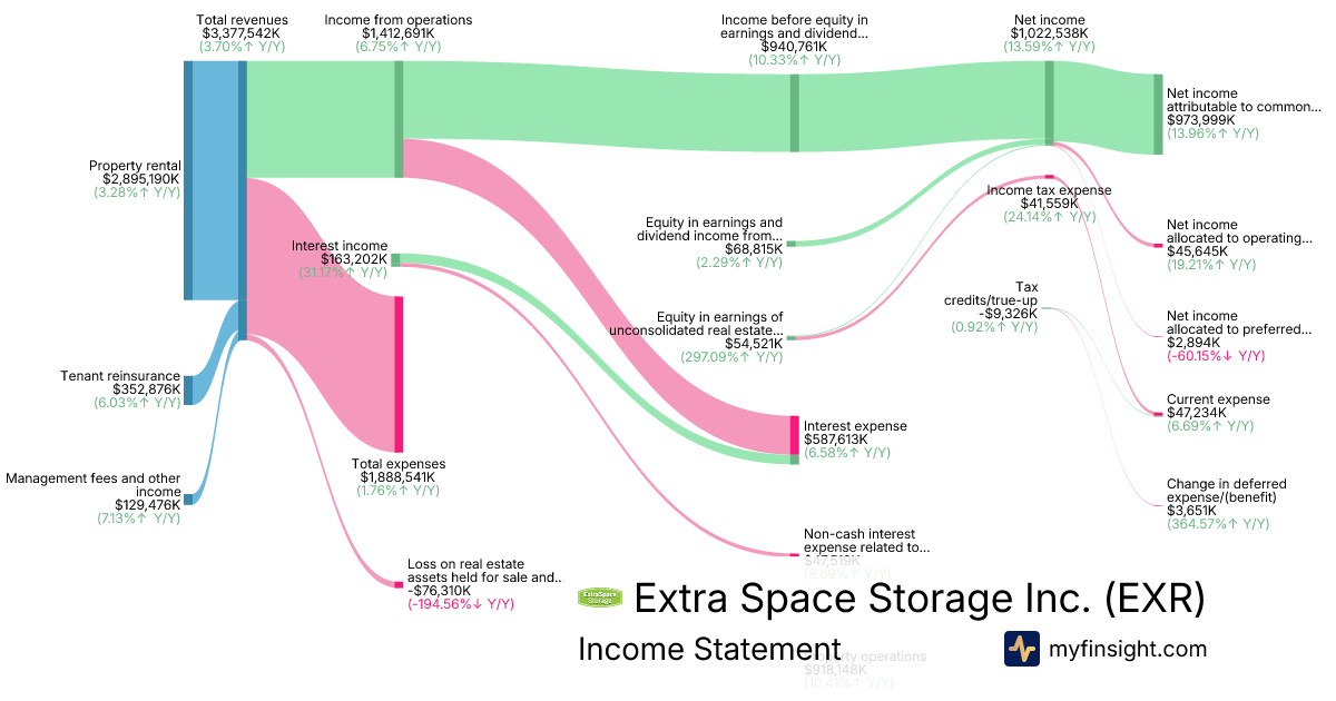 For the year ending 2025-12-31, EXR made $3,377,542K in revenue. $973,999K in net income. Net profit margin of 28.84%.