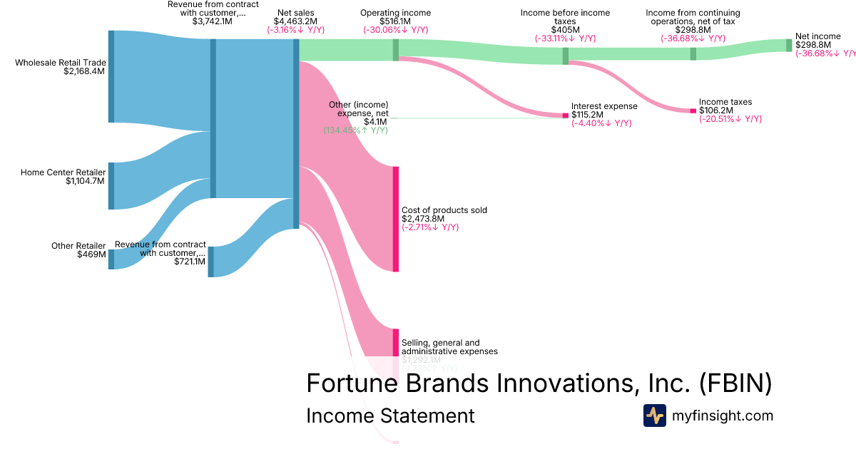 For the year ending 2025-12-27, FBIN made $4,463.2M in revenue. $298.8M in net income. Net profit margin of 6.69%.