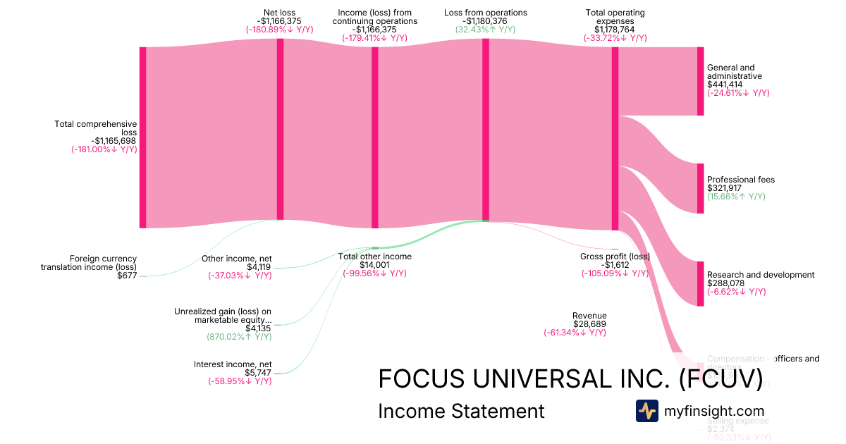 For the quarter ending 2025-09-30, FCUV made $28,689 in revenue. -$1,165,698 in net income. Net profit margin of -4063.22%.