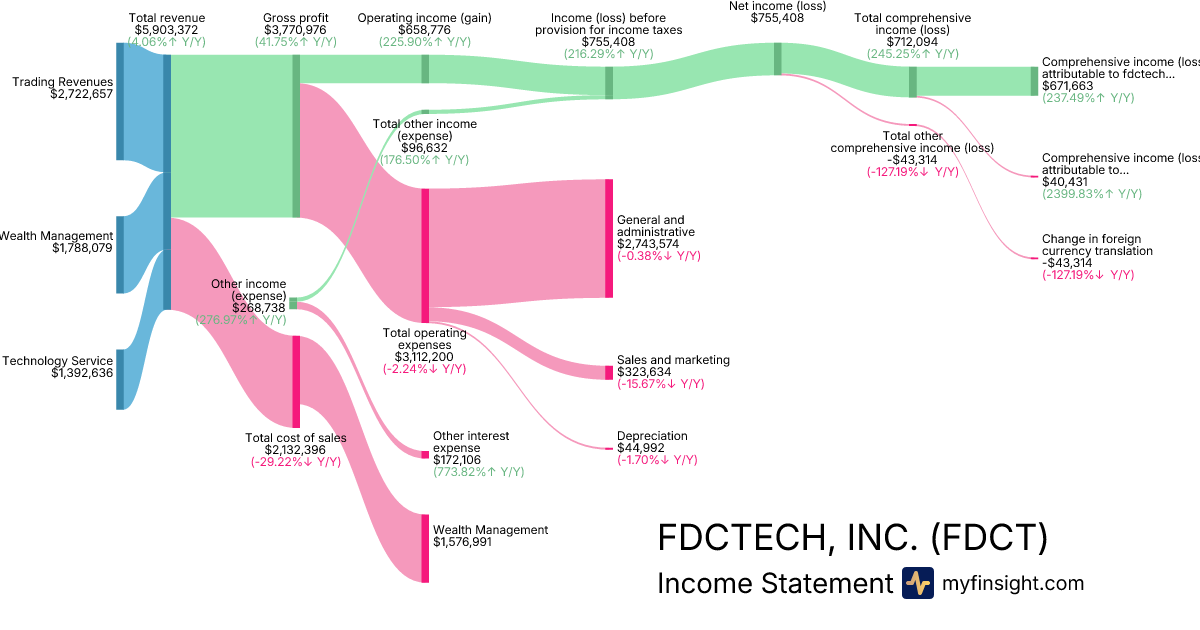 For the quarter ending 2025-09-30, FDCT made $5,903,372 in revenue. $671,663 in net income. Net profit margin of 11.38%.