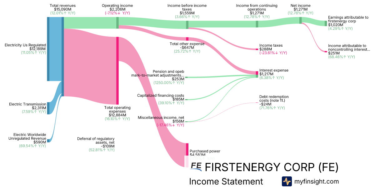 For the year ending 2025-12-31, FE made $15,090M in revenue. $1,020M in net income. Net profit margin of 6.76%.