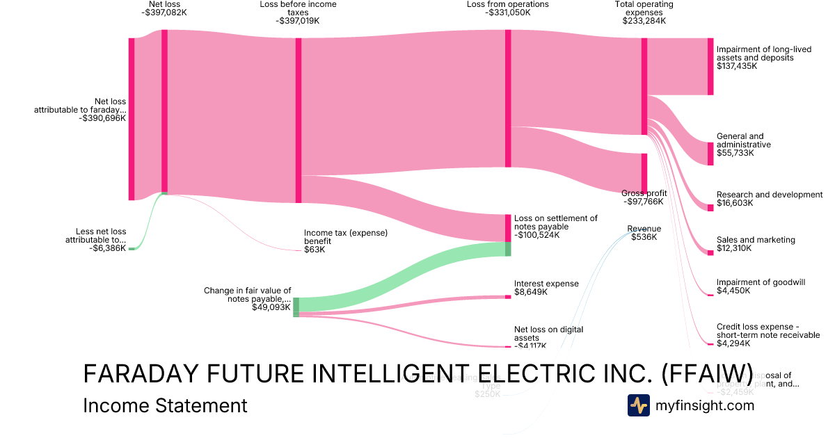For the year ending 2025-12-31, FFAIW made $536K in revenue. -$390,696K in net income. Net profit margin of -72891.04%.