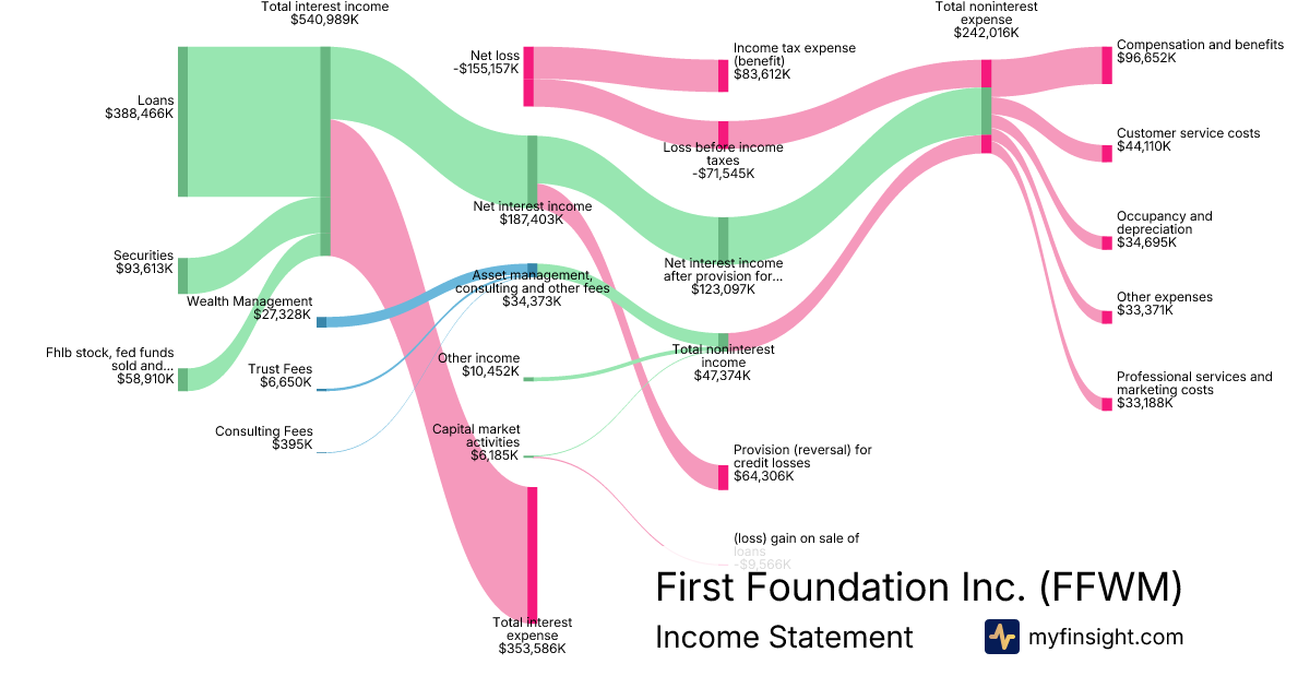 For the year ending 2025-12-31, FFWM made $34,373K in revenue. -$155,157K in net income. Net profit margin of -451.39%.