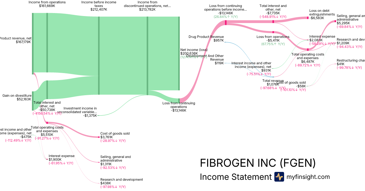For the quarter ending 2025-09-30, FGEN made $1,076K in revenue. $200,636K in net income. Net profit margin of 18646.47%.