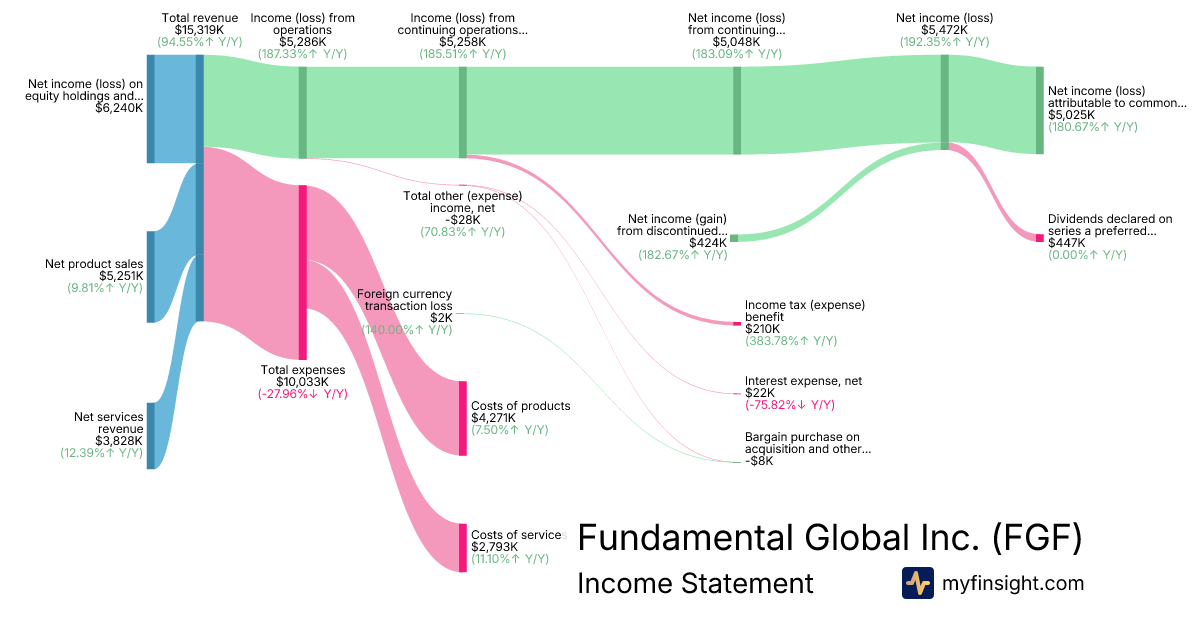 For the quarter ending 2025-06-30, FGF made $15,319K in revenue. $5,025K in net income. Net profit margin of 32.80%.