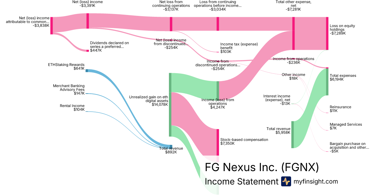For the quarter ending 2025-09-30, FGNX made $892K in revenue. -$3,838K in net income. Net profit margin of -430.27%.