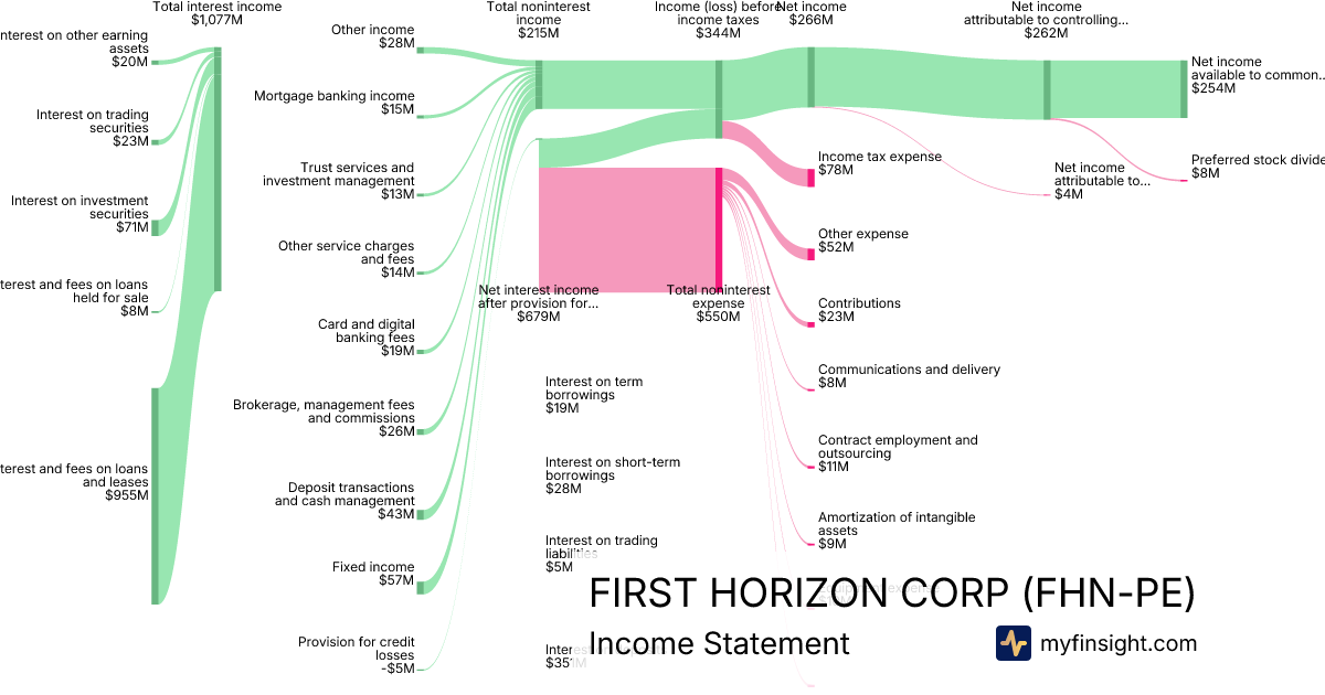 For the quarter ending 2025-09-30, FHN-PE made $2,240M in revenue. $254M in net income. Net profit margin of 11.34%.