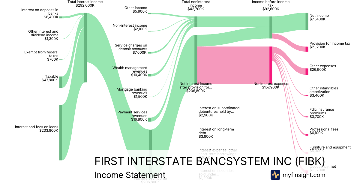 For the quarter ending 2025-09-30, FIBK made $578,800K in revenue. $71,400K in net income. Net profit margin of 12.34%.