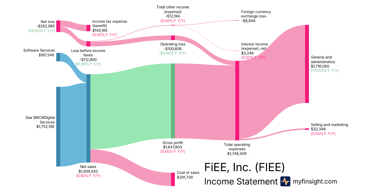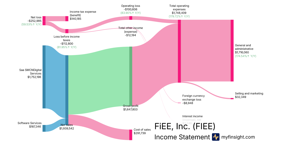 For the quarter ending 2025-09-30, FIEE made $1,939,542 in revenue. -$252,985 in net income. Net profit margin of -13.04%.