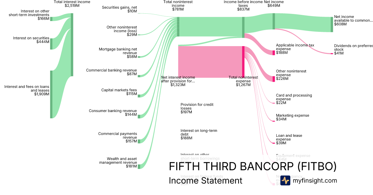 For the quarter ending 2025-09-30, FITBO made $5,566M in revenue. $608M in net income. Net profit margin of 10.92%.
