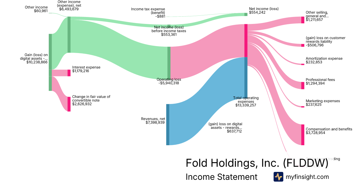 For the quarter ending 2025-09-30, FLDDW made $7,398,939 in revenue. $554,242 in net income. Net profit margin of 7.49%.