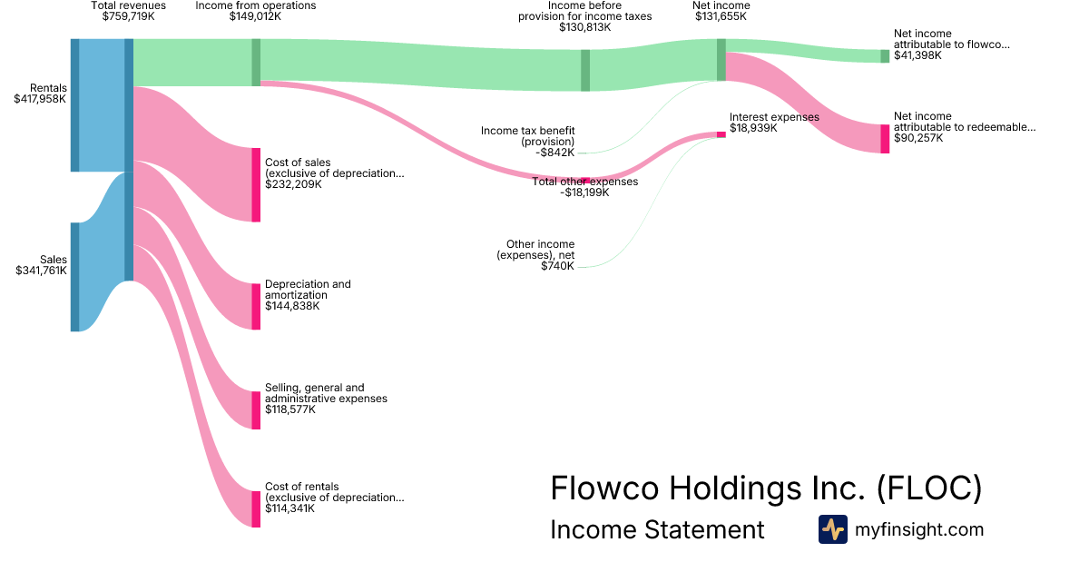 For the year ending 2025-12-31, FLOC made $759,719K in revenue. $41,398K in net income. Net profit margin of 5.45%.