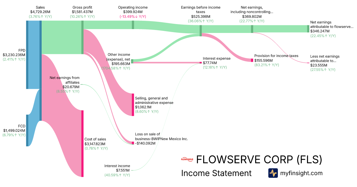 For the year ending 2025-12-31, FLS made $4,729.26M in revenue. $346.247M in net income. Net profit margin of 7.32%.
