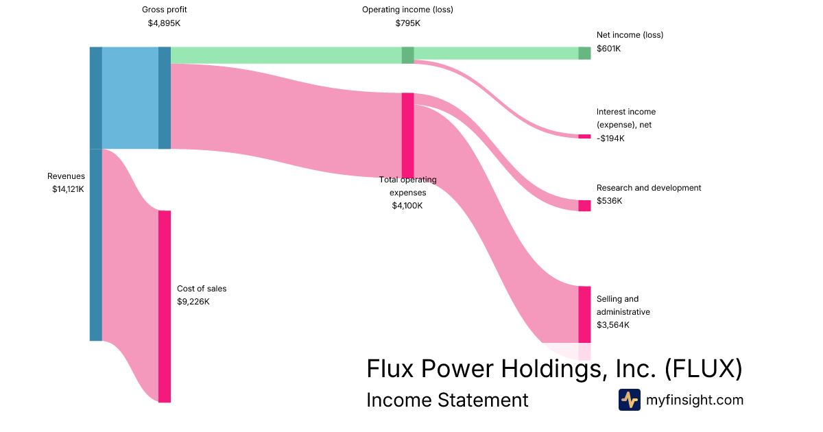 For the quarter ending 2025-12-31, FLUX made $14,121K in revenue. $601K in net income. Net profit margin of 4.26%.