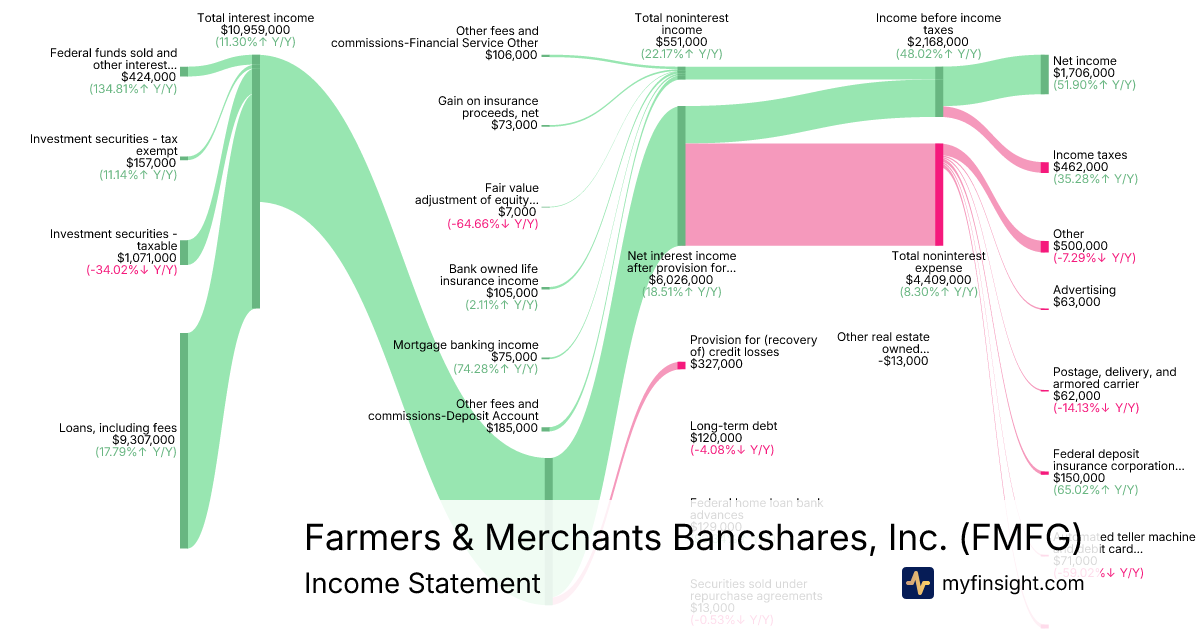 For the quarter ending 2025-09-30, FMFG made $20,538,000 in revenue. $1,706,000 in net income. Net profit margin of 8.31%.
