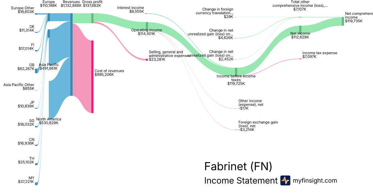 For the quarter ending 2025-12-26, FN made $1,132,888K in revenue. $119,735K in net income. Net profit margin of 10.57%.