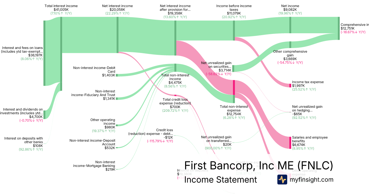 | Interest and fees on loans (includes ytd tax-exempt income of 2,169,000 for september30, 2025 and 1,824,000 for september30, 2024) | 36,197 | 35,014 | 31,435* | 33,498 |