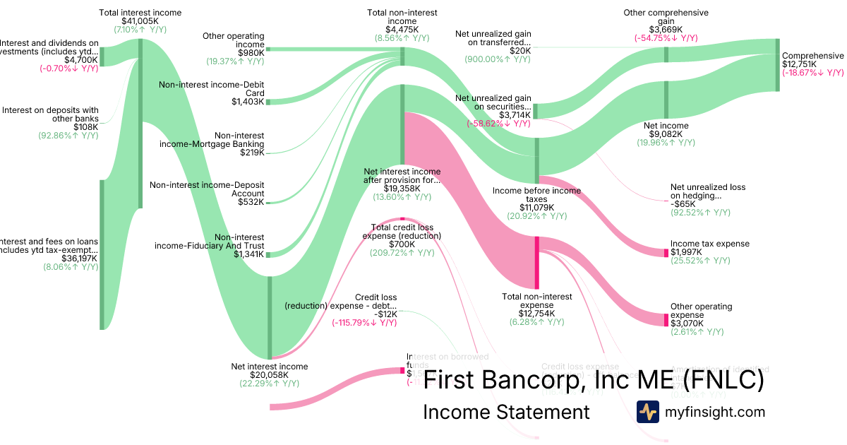 For the quarter ending 2025-09-30, FNLC made $83,627K in revenue. $12,751K in net income. Net profit margin of 15.25%.