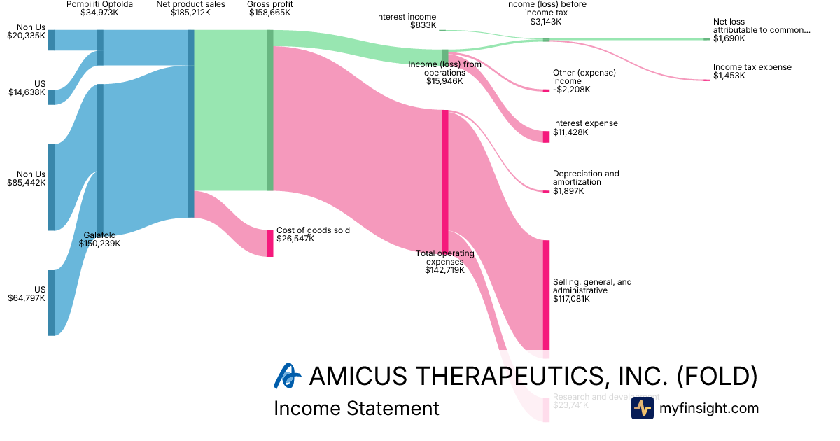 For the year ending 2025-12-31, FOLD made $634,210K in revenue. -$27,110K in net income. Net profit margin of -4.27%.