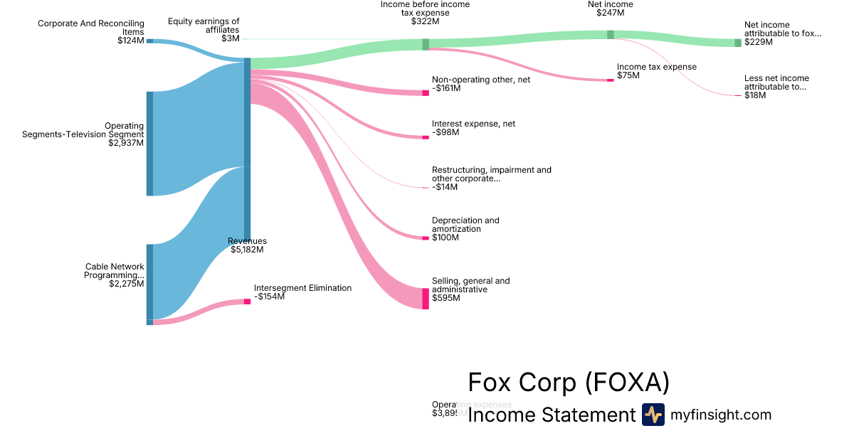 For the quarter ending 2025-12-31, FOXA made $5,182M in revenue. $229M in net income. Net profit margin of 4.42%.