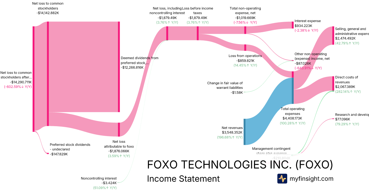 For the quarter ending 2025-09-30, FOXO made $3,548.352K in revenue. -$14,290.711K in net income. Net profit margin of -402.74%.
