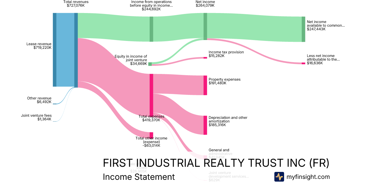 For the year ending 2025-12-31, FR made $727,076K in revenue. $247,443K in net income. Net profit margin of 34.03%.