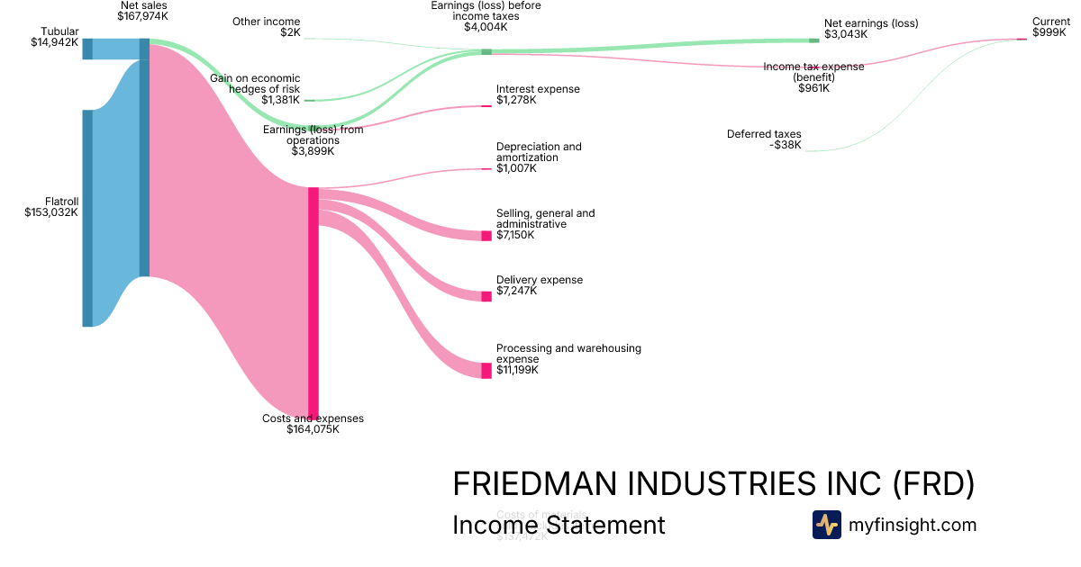 For the quarter ending 2025-12-31, FRD made $167,974K in revenue. $3,043K in net income. Net profit margin of 1.81%.