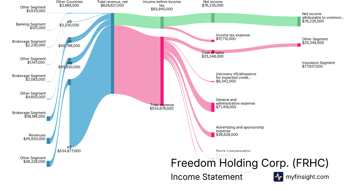For the quarter ending 2025-12-31, FRHC made $1,163,297,000 in revenue. $76,235,000 in net income. Net profit margin of 6.55%.