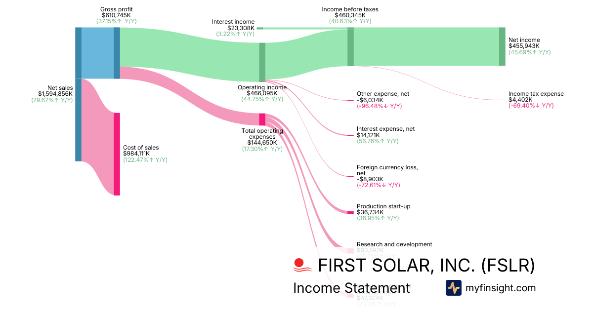 For the quarter ending 2025-09-30, FSLR made $1,594,856,000 in revenue. $455,943,000 in net income. Net profit margin of 28.59%.