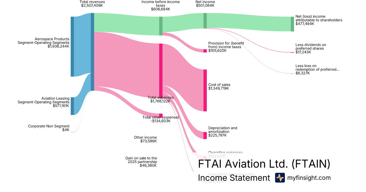 For the year ending 2025-12-31, FTAIN made $2,507,409K in revenue. $477,494K in net income. Net profit margin of 19.04%.