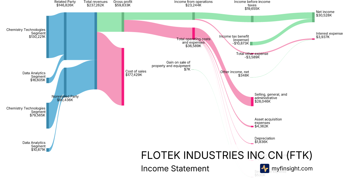 For the year ending 2025-12-31, FTK made $237,262K in revenue. $30,528K in net income. Net profit margin of 12.87%.